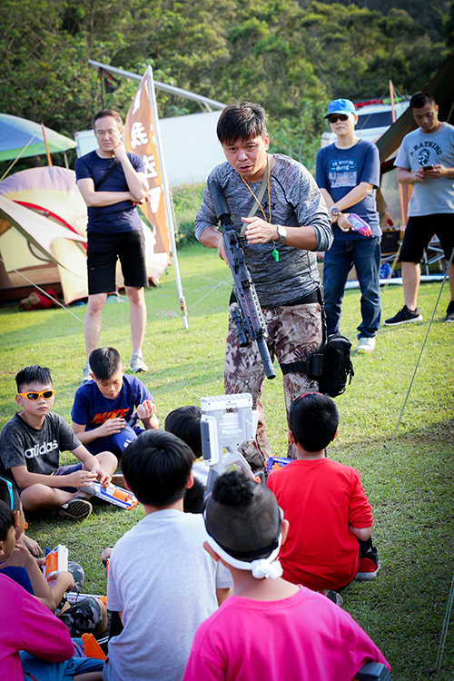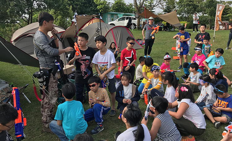 Nerf槍戰是這次露營的重點,把生存遊戲的模式套用在打人不疼的發泡子彈槍上,有組織地讓小朋友分組在草地上對戰,單兵作戰不只考驗體力還有敏捷度,小組作戰還要講究戰略掩護與如何火力壓制,豪哥帶活動講得有模有樣,然後小朋友拿槍上場就殺紅眼扣板機,家長在旁邊看不用擔心孩子安全,甚至有種幸災樂禍看鬥蟋蟀的感覺,娛樂性十足啊。我查了一下網路上Nerf生存遊戲的收費,對比露營時候的付出真的太划算了,而且是周六下午一場、週日收帳前再殺一盤,你說小朋友怎麼會不愛?下次有Nerf開團還會想繼續來,有主題的露營活動才真的有趣,讚。