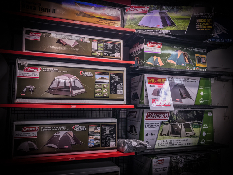 三月中出差到日本東京,趁著抵達時候半天的空檔,跟著網路上露友的推薦前往新宿南口L-Breath晃晃,據說整棟的露營相關用品,除了朝聖一下再看看有沒有甚麼便宜小東西可以買,特別是買不下手的SnowPeak,享受一下花錢淘寶的樂趣。其實這一趟是沒有打算購買帳篷,因為經過幾次露營租用不同帳篷的體驗心得,個人鍾情挑高足夠入內不需要低頭的Coleman帳篷,雖然大家都勸說直上頂級Weather Master氣候達人,但這個差距就是一萬多而且個人覺得帳篷是消耗品,沒有必要多花錢就鎖定CM-17860(俗稱的綠摳),而且台灣跟日本帳篷幾乎沒有價差,在日本買還有保固的問題,買水貨其實划不來~ 母湯喔。結果話說得太早,一進入帳篷區我就傻眼了...