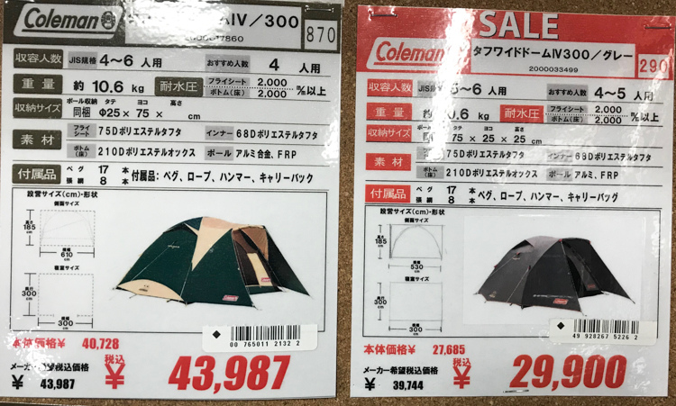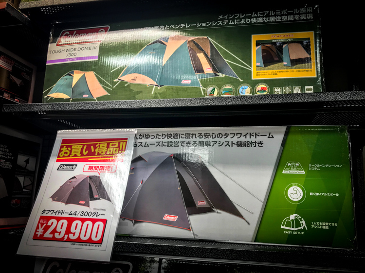 發現一個怪怪的帳篷而且還期間限定大特價,印象中沒有這個顏色的帳篷,Coleman好似沒有以灰色為主色的產品,而且一看規格怎麼跟CM-17860一模一樣,而且價格便宜了這麼多?超過七折的折扣然後如果再加上退稅與折價券折扣,那這頂帳篷不就是便宜到傻眼了?趕緊把店員抓過來確認一下,問他是不是一樣的東西,雖然店員英文不太好~ 但還是可以從「Same, Color」這兩個關鍵字判斷這個跟綠摳是一樣的產品,深呼吸一口氣... 絕對不要衝動購買。馬上轉頭搭電梯下樓到隔壁高島屋中讓自己冷靜下來仔細琢磨琢磨,最後覺得這麼便宜的帳篷不扛回去對不起老闆叫我來日本出差,就再度搭電梯上樓很豪氣的對著店員說,I Take it and Tax refund please!!!