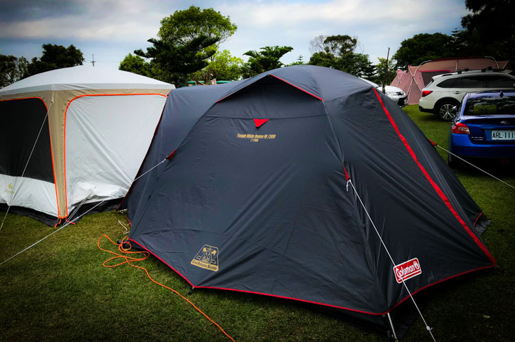 [後記] 據說開新帳會遇下雨,就在露營前把帳篷打開灑幾滴水,看能不能破除這魔咒... 結果證明幾滴水不夠考驗這頂帳篷的耐水性。周五夜衝來到通霄三合院營區,搭好帳篷後想著可以開始吃宵夜了,然後風雨就來了... 20級的陣風與大雨的詭異天候下,把搭好的客廳帳拆下再將帳篷外線全拉上就全身溼透了... 然後當場決定把帳篷扔在營地風雨測試,全家打道回府洗個熱水澡隔天再來。一覺醒來跟營主確認一下帳篷是否健在,Line上收到一張帳篷仍頭好壯壯的照片,看來我買對了以後可以把野外安全託付給這頂灰摳。