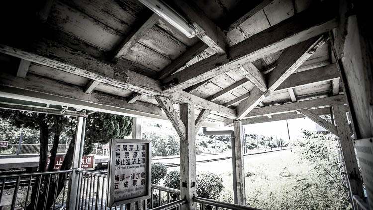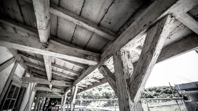 透過木頭結構上斑駁的痕跡再再說明了這個具有百年歷史車站的滄桑,靠近海邊容易侵蝕加上烈日曝曬,新埔車站整體的感覺不是很好,但這樣卻少了因為背負了觀光使命而用粗糙的手法胭脂抹粉,而失去了古蹟應有的韻味,我想每個城市的老街... 就是一個個最好的負面案例。