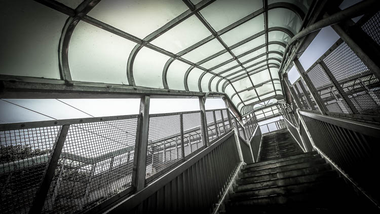 通往月台的天橋上面罩有大大的遮光罩,這應該是海線鐵路的共通設計