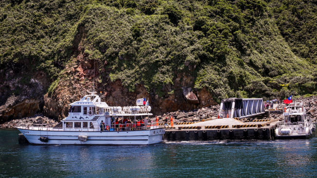 我們的船竟然停泊在龜山島上接一群人,沒想到龜山島上面還可以玩健行