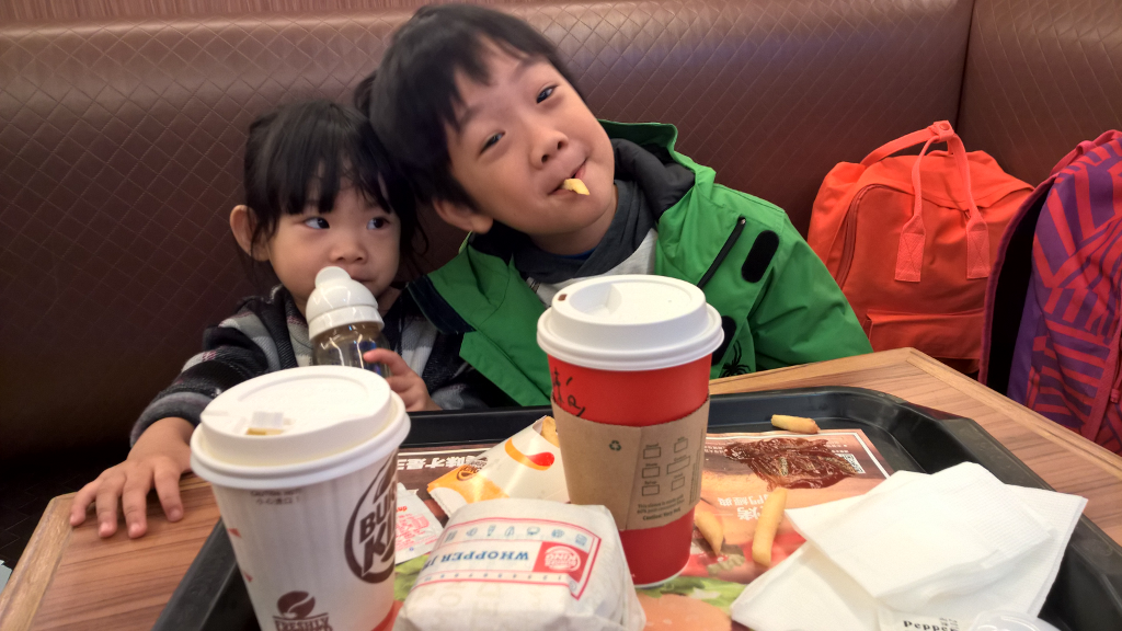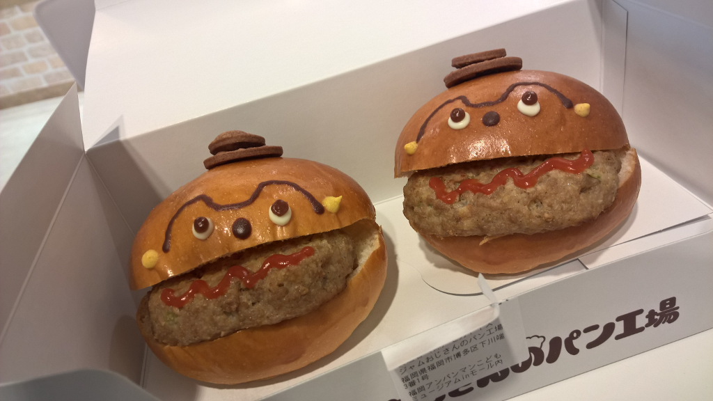 話說... 為什麼要到這個地方呢?因為本人變成內湖彭于晏之前,臉部的比例與結構跟麵包超人簡直是一模一樣,所以老婆就安排了這個點,讓我飛到福岡來認親戚...。我這個麵包超人大叔對行程沒什麼意見,只是覺得下飛機第一餐一定要吃好吃飽,不能發生去年去沖繩的第一餐吃漢堡的悲劇,所以飛機上就點了水果餐,準備下飛機好好來放縱一下,結果... 事與願違,第一餐還是吃漢堡~ 不過長得比較可愛而已。