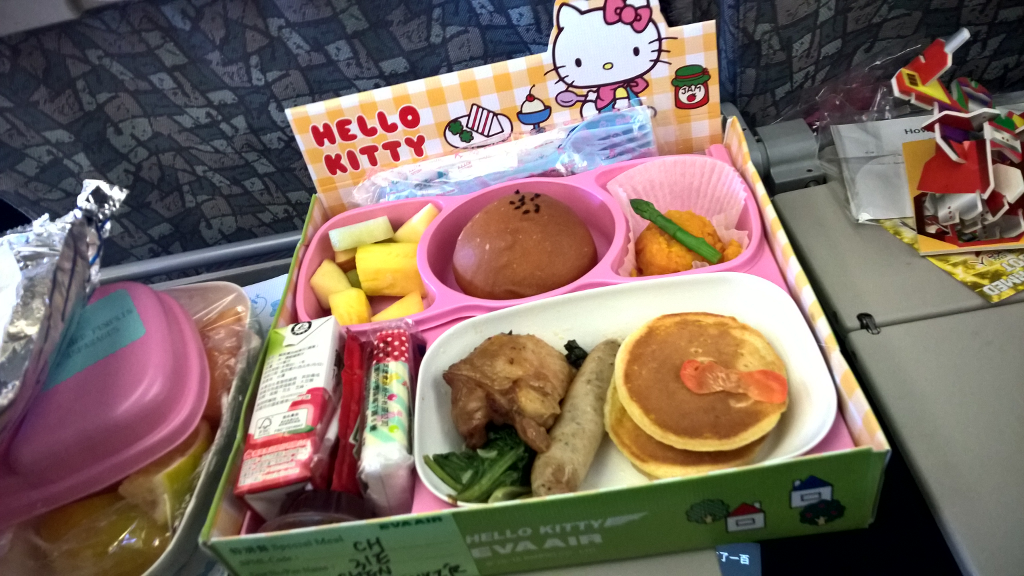 比起水果餐,兒童餐真的豐盛多了,這種三小時的飛行,看著清淡到油都榨不出一滴的餐盤,有塊肉來啃多好