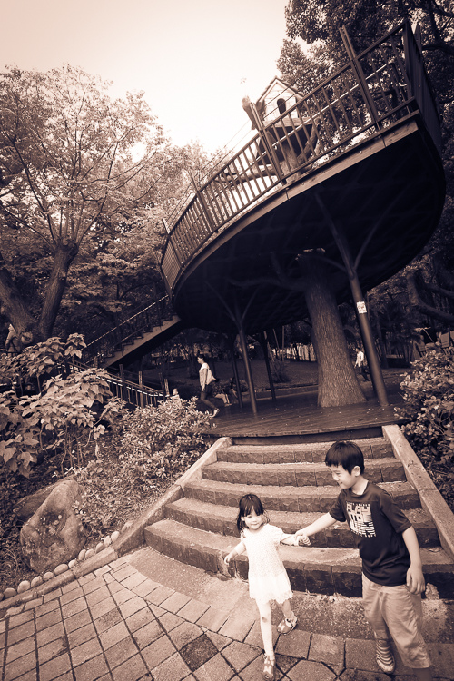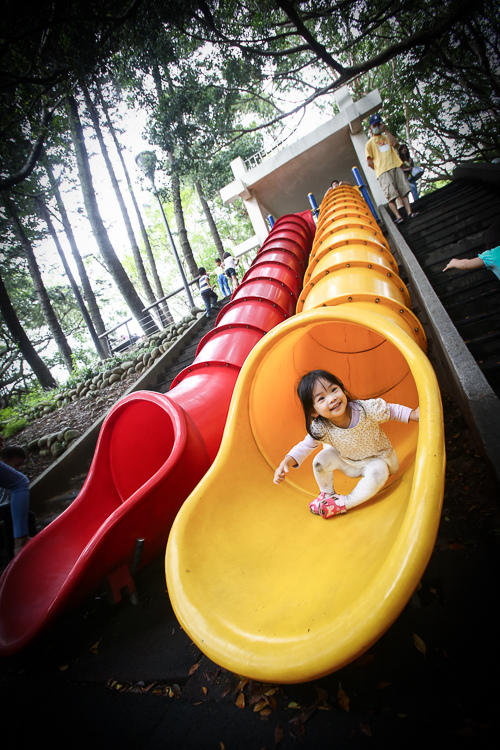 吃飽飯就轉戰正牌「虎頭山公園 - 奧爾森林學堂」,是個非常適合溜小孩的地方 - 可以讓小孩非常疲累,大人只要監看得輕鬆樂園。虎頭山公園這麼傳統的名稱,絕對不會是個剛開發的新景點,這個休閒公園已經40 - 50年了,是桃園地區民眾的休閒場所。而「奧爾森林學堂」在101年9月29日加入,更是吸引許多外地的父母帶著小孩來朝聖,因為招牌的樹屋以及小孩最愛的溜滑梯,絕對沒有小朋友會在這裡跟爸媽耍賴,只有全力奔跑直到體力用盡為止 (耶!)。至於森林學園名稱的由來,是因為虎頭山公園本身就是一座森林王國,其中棲息著台灣山林中體型最小的貓頭鷹「鵂鶹」,也成為虎頭山公園的最佳代言人,「奧爾」即取自貓頭鷹的英文OWL諧音。