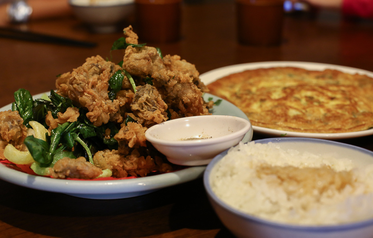 豬油拌飯、香噴噴的蚵酥與九層塔蛋,實在令人受不了