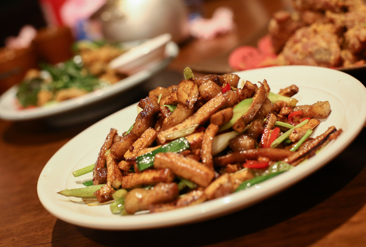 這裡的客家小炒很道地~ 當然薑絲大腸也挺不錯,滿足!