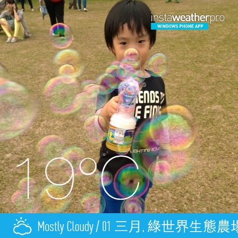 兒子終於買到自動泡泡槍了,草原上噴了2/3罐... 所有小孩都圍著他尖叫