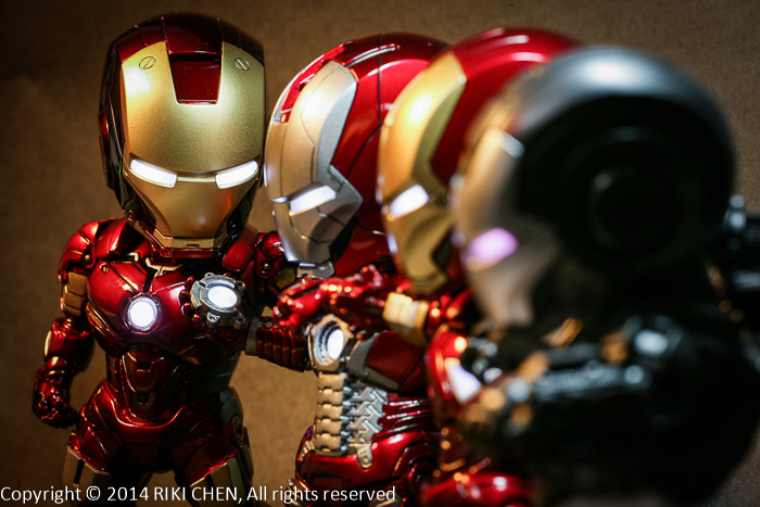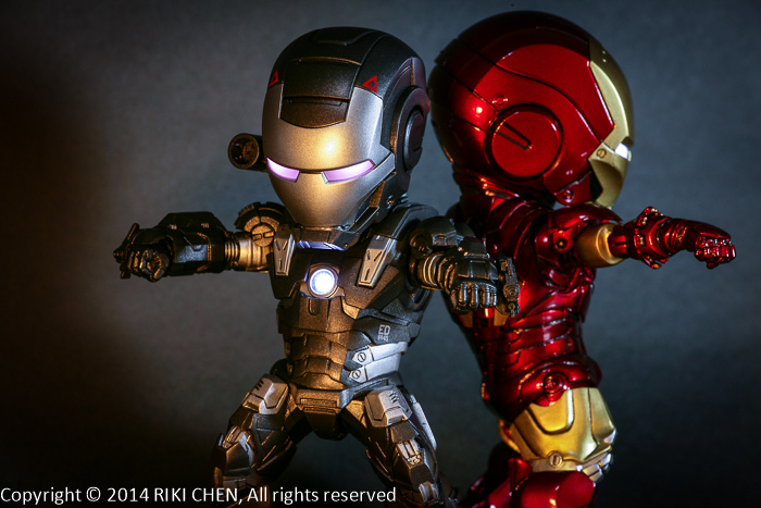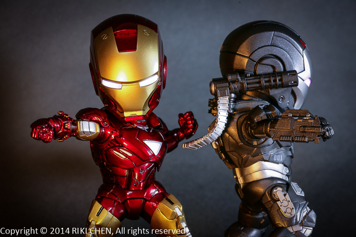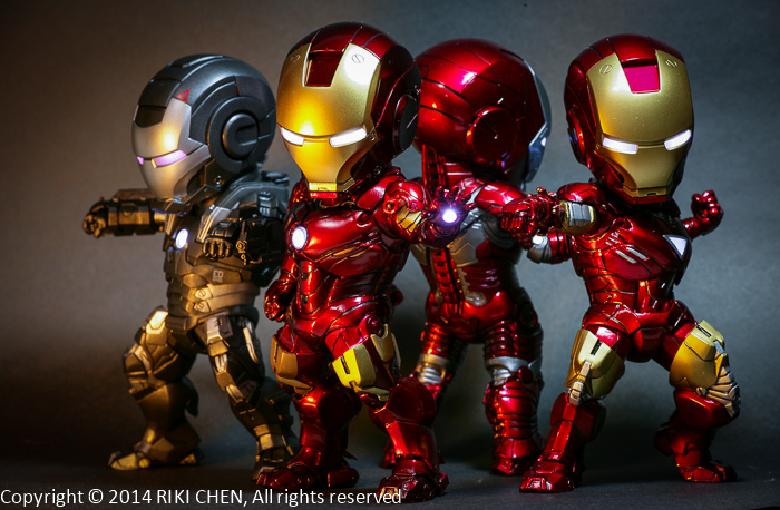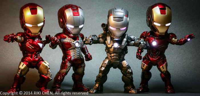 話說這一套是我對鋼鐵人電影的唯一收藏品,本人對於正常比例的無感,但某次在美麗華的鋼鐵人"拐錢"特展中,看到這四仙Egg Attack出品的Q版,當時就很想入手... 沒想到我還沒有跟老婆提預算申請,內人那如黃鶯出谷般的聲音突然在我耳邊響起... "好可愛喔,買回家吧" (喔耶!)