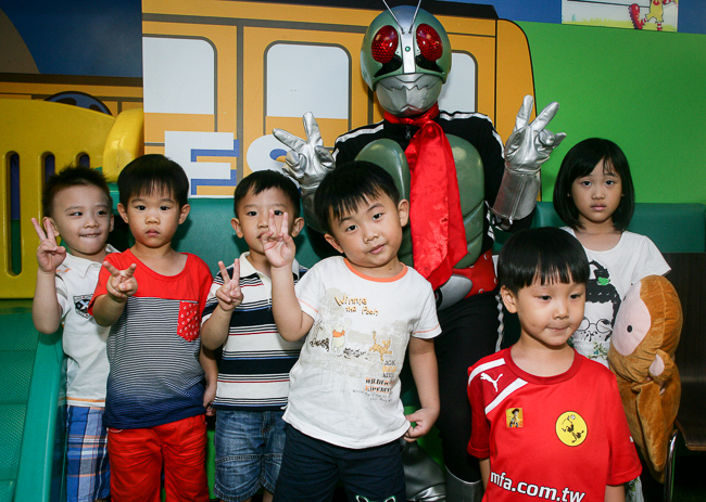 所有的小朋友(除了我兒子)都很開心的跟假面騎士合照