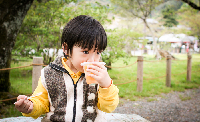 對不到四歲的兒子來說,這幾天的行程真的有夠操,讓他睡飽就是近中午出門,先到高島屋買壽司便當再出發。好險我們住在挺方便的難波,感覺日本中心應該是高島屋吧,向左走買便當向右走就搭電車。日本換電車實在是門大學問,不相信車站人員建議在梅田(Umeda)換車,自作主張到西中島南方(Nishinakajima-minamigata),就淪落到搭乘莒光號(準急 Semi-express)慢慢龜到嵐山。