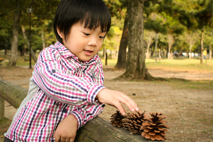 撿起松果排排站,跟我們解釋哪一個是爸爸,媽媽,澄澄..