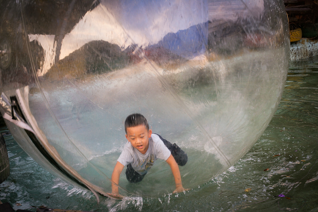 這... 水上氣泡球,看起來很好玩,可惜安全措施沒有很好,害NEO上岸時撞到嘴角流血