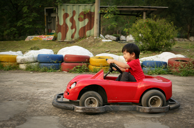 三歲小孩就能自己開碰碰車了,拿到駕照就去德國開無限速公路吧