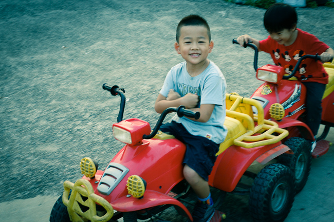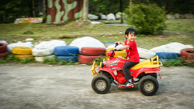 擺出帥氣的Old School Pose, 果然Neo還是跟他爸去隔壁開玩的GoKart比較High