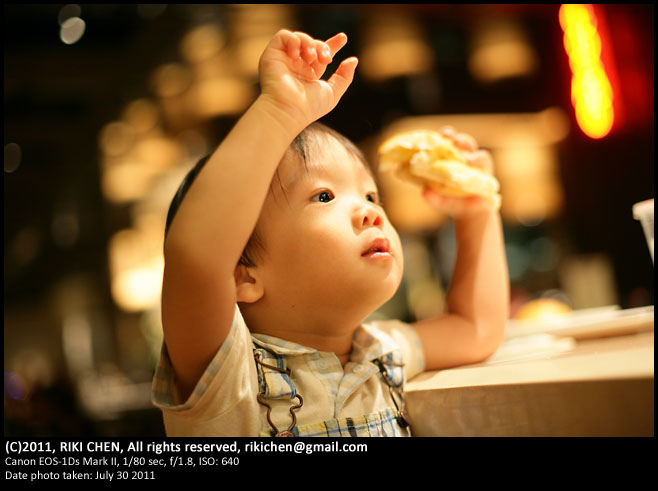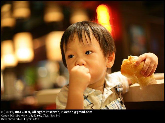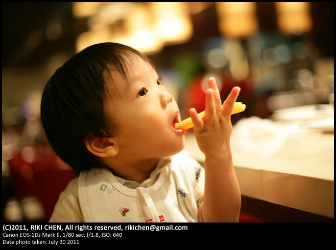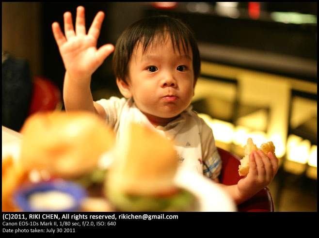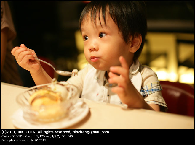這些照片是在貴婦百貨B2的餐廳拍的,有遺傳到老爸愛吃美式食物,麵包、薯條與冰淇淋都是橘董的最愛,乖乖吃飯的小孩最可愛了~,坐不住的小朋友只有在餐桌上才受控制,吃飽喝足的結果就是有體力大鬧下一個行程....