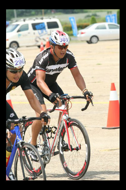 一開賽第一圈是暖身圈,大家都慢慢騎,等候時機衝刺...
