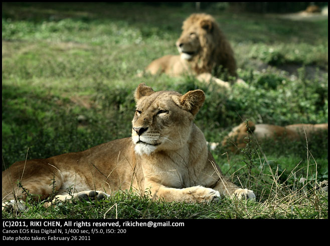 公獅子是標準吃軟飯動物... 據說背景那隻公獅是獅王,有一大群母獅任他差遣