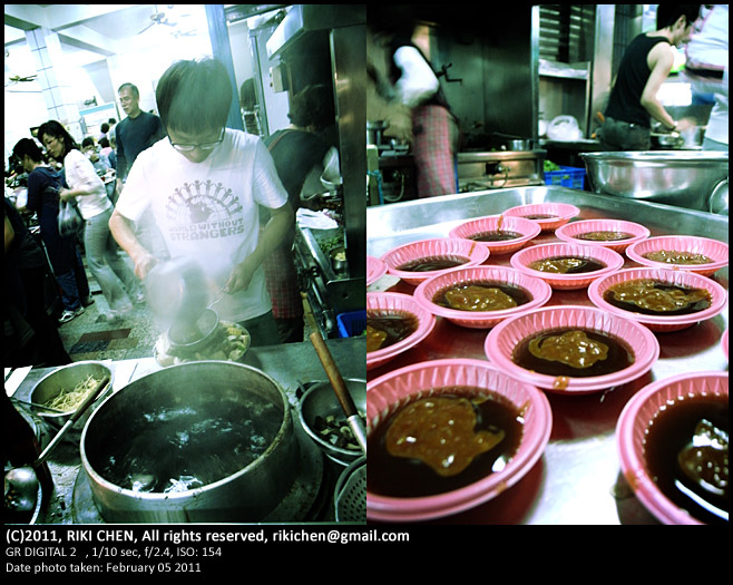炒菜的只有一位阿嬸,哪裡忙得過來啊~~ (右圖)羊肉店的沾醬都是豆瓣與醬油的組合,但其中是有玄機的