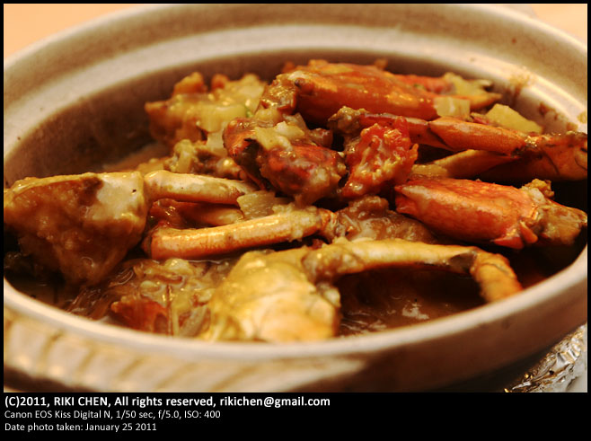 第二次是跟乾兒子一家人前往,嘗鮮點了「粉絲蟹煲」與「脆皮雞」,換我老婆整個被他的味道迷惑了,一直嚷著好好吃... 好好吃...,特別值得一提的的是粉絲蟹煲,這道菜的精華已經不在螃蟹了,而是吸收濃郁咖哩湯汁,的粉絲,內行人可以效法「孔融讓梨」把螃蟹給朋友吃,自己多嗑幾碗粉絲才是王道。