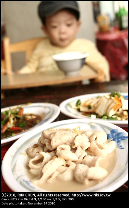 客家菜每次必點就那幾樣... 客家小炒、薑絲大腸,只有兩個大人也沒辦法點太多菜,當天有再搭配一到筍子,以及要給橘董吃的皮蛋豆腐,結果這家五十年老店讓我頗失望,雖然不難吃~ 但也沒有經驗的感覺,一道菜平均100元... 我覺得可以處理得更好一些,吃完閃人~ 以後不會再來。