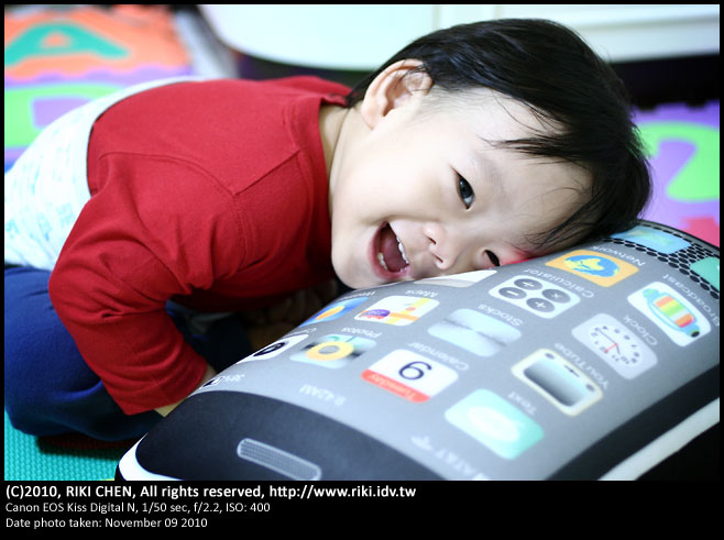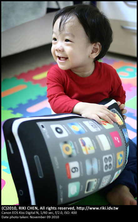 橘董很趕時髦的... 人手一支Apple iPhone的情況下,自然也得弄一支給橘董過過癮,不過咱們出手大方,一次就給他訂兩支,這樣尊貴版加倍... 而且size也得比別人的大支,襯托出我們不凡的氣勢! 如果手機只能拿來聽電話、上網、灌App... 玩無聊的Angry Birds~ 那多遜啊!橘董對手機有獨到的要求... 【1】柔軟度要夠,硬梆梆的3C用品遲早被淘汰。你看工研院不是靠那軟螢幕得到wall street發明大獎;【2】Size要夠大... Steve Job耍心機讓大家對平板電腦規格傷透腦筋,7吋? 9.7吋?.... 跟著老賈屁股後面跑,哪能開創出新局面!橘董的要求就是比他的頭大,這樣喝奶時候還可以當枕頭,你看這孩子多麼睿智啊。 至於能不能換電池、天線門那些問題... 橘董的iPhone都沒有這問題啦,大人物都是用客製化的,懂嗎? 為什麼一次要買兩支?為了Facetime?? (我就知道你的想法這麼淺...) 是幫貢丸表哥也弄一支啦,懂嗎? |