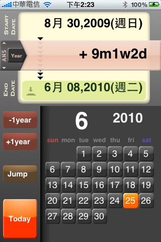 Apple App store果然名不虛傳,什麼鬼軟體都有,馬上又讓我找到一款符合我需求的免費軟體-「DateCalc」,這樣我的照片就可以加上小橘的當時年紀囉,讚啦! 如果只要計算寶寶的年紀,用DateCalc就夠了。 |