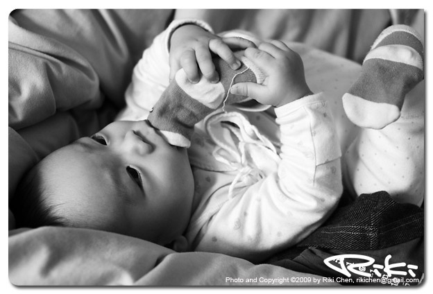 時間過得真快,轉眼間小橘就邁入六個月了,除了份量逐漸增加之外,筋骨也是逐日勇健,現在可以隨意翻身,趴在床上跟我們玩遊戲,或是撐著小身軀對著我們大吼大叫... (真是壞脾氣的小子)。 俗語說「七坐八爬九發牙」,但現代的小朋友鈣質補充都不錯,六個月的小橘有兩顆可愛的小牙來報到囉 ^^!! 雖然老爸目前面臨相機斷層期,5DIII入手前還是得靠老舊的350D苦撐,但小橘的成長紀錄可都不會少,目前已經累積的12GB的JPG檔案了... :) |