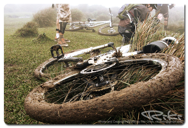 住台北市誰不知道陽明山? 如果告訴大家我們在這座山裡面迷路,搞得全身狼狽才脫困,你信不信呢?同樣一座陽明山,我們去的不是印象中泡溫泉、吃土雞的地方,而是翻過擎天崗,只有牛才知道的世外桃源,充滿著令人回味無窮的青草香與美麗的風光,啊~~只要是熱血漢子必定要挑戰一次,正所謂「登泰山而小天下」,自古豪傑皆上山論英雄。如今此情此景只存在腦海裡回憶,因為打死我也不會再去了! 故事是這樣開始的,重複的五指山、軍艦岩林道行程,讓人不禁想嘗試一些新鮮的路線,無意中見到北台灣offroad團的探險路線,覺得應該來依樣畫葫蘆一下,就提議山傑克安排這樣的探險路線,一圓大家心中那個「冒險王」的夢。 約定好時間搭車上山,來到雲霧瀰漫的擎天崗,組好裝備進入今天的路線,一開始大家還興高采烈,新奇的路線加上擎天崗的牛群,感覺今天會是一趟愉快的郊遊之旅,心想大約12點就可以回到家中,所有人下午都安排了其他行程,看電影的看電影、趕中午攤喝喜酒,沿途嬉笑打屁非常愉快,這樣的心情當越過柵欄,發現今天的林道跟想像中的不一樣時,所有好心情立刻就消失無蹤... 這裡哪有什麼林道可騎車?越野行程稱為Offroad,今天卻是難度更高的NON-Road,沿途都是無法騎乘的路段,在不斷的推車、扛車中緩慢的前進,沿途與有刺樹藤、芒草、爛泥、牛糞拉扯,盼望著柳暗花明又一村,前面會突然出現一條可以騎車的道路,讓我們爽快地滑下山。再經過半天的奮鬥之後,隊長無奈下了折返令,走原路回家去吧。 「走原路!?」---我暗暗叫苦,隱約記得剛剛是下坡的路線,如果折返不就是窒礙難行的上坡?感覺體力已經瀕臨掏空的窘境,接下來的路要如何完成啊?尷尬... 現在只有兩條路可以選,一個是打119請直升機來救我們,另一個是硬撐下去走完全程;不走也不行~ 掉頭重回恐怖的芒草牛道中,扛起單車緩慢的往山頭陵線前進。 車很重... 真的很重,出發前愛不釋手的單車,現在變成痛苦的油瓶;地很滑... 泥濘不堪,原地踏步的狀況非常糟糕,用非常慢的速度前往回家的路,當體能耗盡、飲水喝乾的那一刻,週遭的飛蚊讓我想起Discovery頻道中,頻死的沙漠動物頭上盤旋的禿鷹,OMG... 我今天會不會在這裡掛點啊?恍神中我的人生開始flash back,從擎天崗上廁所開始,早上吃的黑胡椒漢堡,山傑克門前的集合LDS,中山北路婚紗街的逆向行駛... 一幕幕影像開始倒帶,好險沒有迴轉太久,就聽到一個熟悉的聲音~ 「RIKI,你死了喔!?」原來是JACK看我落隊很久,趕緊來看看是否無恙,二話不說馬上幫我扛起單車,幫助我度過這個難關。我實在太虛了,JACK扛著車走山路也可以把我甩開,汗顏~ 汗顏啊。 回到擎天崗稍作休息後,就一路下滑仰德大道,路上所有人對這群泥人行注目禮,唉~ 真是難忘的體驗。 |