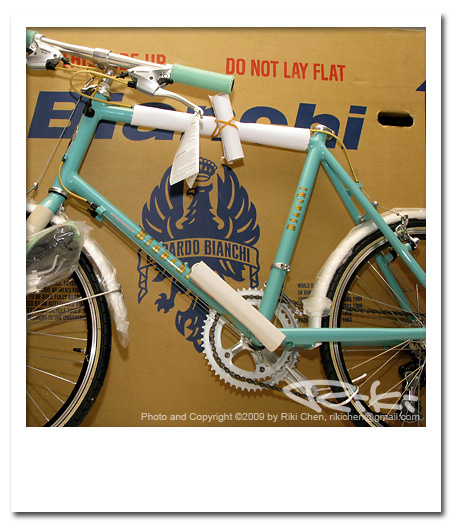 真是太幸運囉,參加mobile01網站舉辦的抽獎活動,原本只抱著抽獎拿水壺的心態,幾天後收到PM訊息,才發現我竟然中獎了... 當時還是開心的慶祝我中了一只紀念水壺,納悶許久怎信箱還沒收到獎品,上網確認一下後才發現... 原來我抽中的不是水壺,而是頭獎... 一台義大利的小徑車 Bianchi Mini Velo 8F,一台要價NT$23000的高級單車耶! 這可不是一台普通的單車,自行車界號稱一王四后的東宮首選,而且是最有價值的經典綠色 - Celeste(類似Tiffany綠),整台車散發一種濃濃的貴族味道,非常適合女性朋友、或者送給家中女王騎乘。不過我家已經車滿為患了,這台車就賣給有緣人吧~ 全新車款尚未落土,裝上踏板即可出發。 Bianchi Mini Velo 8F 規格 (Size 48)