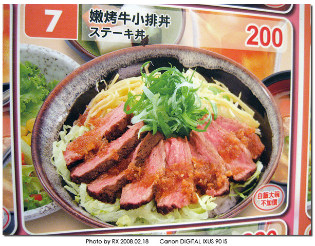 這篇是小品,沒必要寫太多字,跟某周刊的壹青天專欄一樣多就好,三個字搞定─「劣、劣、劣」! 中午跟LL媽、JOE聚餐,沒創意的我們仍然約在火車站KMALL集合,一到現場找不到LL媽,原來她老人家又迷路了,直嚷嚷「我找不到KMALL,怎變成統一元氣館?TMD 現在什麼都要跟統一掛鉤了嗎?台灣主權萬歲......」!請不要學某人拿愛台灣當口號,遲到就是遲到快認罪,乖乖請客買單啦! 最後選了和民餐廳,一看到MENU上的牛小排丼就被它迷上了﹝Damn! 這個「丼」字打不出來,到吉野家網站偷COPY﹞,照片上牛肉片超厚實看起來份量十足、心花怒放,不囉唆三人就通通點一樣的料理囉,牛排... 牛排... 牛排... 好期待喔,萬歲! 等到上菜一看通通傻眼,跟照片上好像不太一樣耶,有種競選承諾縮水的感覺,XD! 好吧,既然被MENU上的攝影作品將了一軍,我們拍照也不是難事,就把你的素顏照PO出來,以昭公信! |