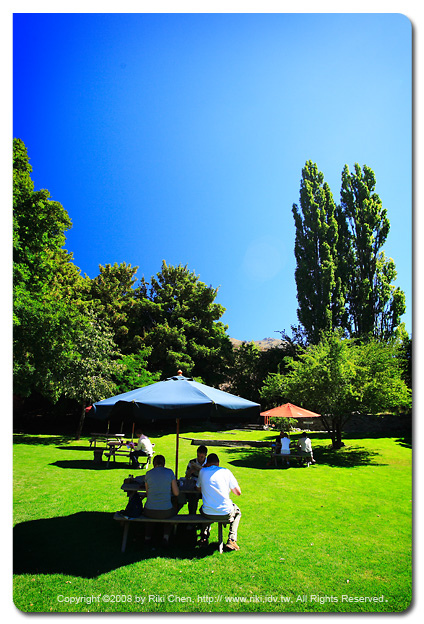 早上集合時候赫然發現團員少了兩人!難道是脫團投奔自由了?導遊雷克斯說這裡臭氧層破洞,外星人都從那邊進出,這對夫妻可能被抓走了~~ 好的,以上都是吃早飯時候的白目對話,其實冒險王Alan夫妻去參加高空跳傘 (Sky Diving)去了,其餘團員就跟著導遊在這典型的渡假湖邊小鎮Wanaka到處晃晃,在湖邊的街道上悠閒的消磨時光,隨便吃點東西當午餐與跳傘夫妻會合就出發了。 沒錯,我們到紐西蘭吃炸雞... 其實是因為這小鎮沒啥好吃的,雷克斯也不建議我們花大錢吃排餐,所以建議我們隨便吃吃,省點銀兩給接下來的旅程。 在車上跳傘夫妻開心地跟大家炫耀有多刺激、多麼的回味無窮,突然變成了冒險行程傳教士,本來下一個行程高空彈跳只有一對夫妻報名,Alan老婆Macy在車上馬上宣佈投入BUNGY JUMPING 志願軍行列,大姊頭都說了~ 其它娘子軍的心竟然也被煽動,所有的老婆都嚷著要報名,怪的是沒有半個老公要參加,因為男人要省錢所以只好含淚掏錢贊助老婆的冒險夢,可是每人都嘴角為何都有一抹邱義仁的微笑呢? 刺激的冒險需要讓情緒鎮定一下... 貼心的雷蒙團的行程安排也考慮到這點,所以帶我們到「Cardrona Hotel」來品嘗他門自製啤酒,必須特別強調這可是紐西蘭當地有得獎的啤酒喔,不是導遊帶我們去小酒館喝海尼根混行程喔! 大家端著啤酒在美麗的莊園中聊天,最後老公們一起舉杯預祝老婆高空彈跳成功,萬歲~ 出發去跳河囉! 延伸閱讀:紐西蘭蜜月文全集 (http://blog.xuite.net/rikichen/rx?st=c&p=1&w=1005788) 蜜月結束已經兩個月了,我才寫到第四天的行程... 忠實讀者應該都習慣了! |