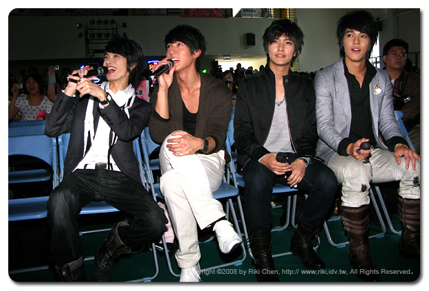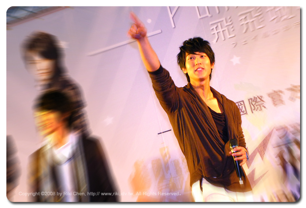 星期天男子天團《飛輪海》於南港運動中心舉辦活動,由於天氣悶熱所以決定攜帶Powershot G9 + 580EX出門就好 (分明就是偷懶),一到現場輕巧的裝備立刻贏得攝影記者的一置讚嘆,這根本就是粉絲追星裝備示範而不是攝影工作重裝出擊~ 好啦,我承認我偷懶,不過真的想測試一下這台G9拍活動的能耐,這樣可以嗎? 飛輪海果然魅力驚人,來自世界各地的粉斯將現場擠得滿滿的,主持人得用日語、韓語與國語交叉串場,才不會讓國際歌迷們聽鴉鴉烏。在眾人期待的主角終於登場獻唱一曲《新窩》,其實唱什麼歌曲已經不重要了,我的耳中都是高分頻的尖叫聲... 好恐怖! |
