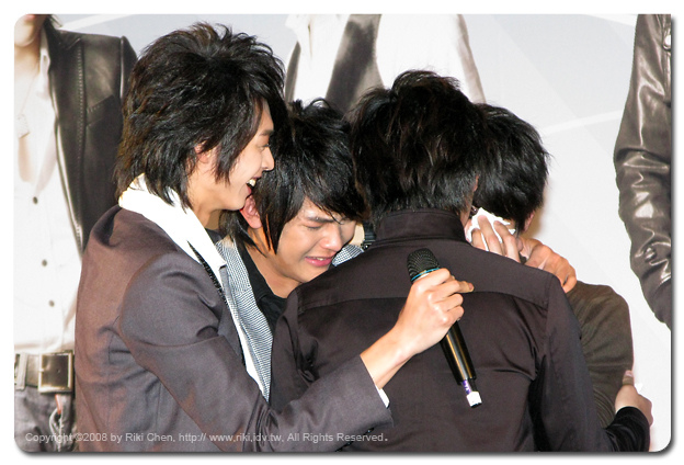 今天的重頭戲是主辦單位安排了一段催淚影片,內容是四位大男生成長的影片,以及家人鼓勵打氣VCR,想到一路走來的辛苦,全忍不住男兒淚,在台上哭成一團!飛輪海的成功其實背後要付出很大代價,四人滿滿的時間表代表的意義除了辛苦的工作外,也必須要犧牲與家人相聚的時間,這就是為何看到親人影像很容易催淚的原因... 尤其炎亞綸談起自己受傷的膝蓋,在復健狀況不理想的狀態下,可能必須再開一次刀,未來可能永遠無法再打籃球,眼淚更是不停狂飆,台下的粉斯們更是心疼地大喊加油! 加油!飛輪海~ 有許多粉絲永遠支持你們喔! (內地網友請至分站觀賞:http://rx-orange.spaces.live.com/) 本篇圖文禁止轉載,切勿自行轉貼! |