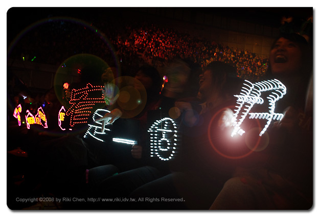 2007年對娛樂圈來說真是特殊的一年,「超級星光大道」這個節目的崛起,帶動了選秀節目的風行,而一群熱愛歌唱的參賽選手們,一路走來更是緊緊繫住了觀眾的心,直到比賽結束人氣仍然不減,他們就是2007年的奇蹟 ─ 「星光幫」。 今天的文章比較特別一點,照片的內容不是今天主角,而是注視著歌手演出的一群人;舞台上歌手的魅力來自於不斷的努力與訓練,他們的努力固然令人欽佩,但是激勵著這群小朋友往前進的,還有一股強大的力量,就是藉由網路力量而凝聚一起的粉絲們,他們支持的力量是歌手們最珍貴的動力來源。 12/29日的演唱會採自由入場制,開演前許多粉絲就開始排隊,甚至從演出前兩天開始,就是為了以最近的距離欣賞歌手們的表演,並替他們加油!在現場我看到整群的宥子、包子們(林宥嘉粉絲)、茱寶們(周定緯粉絲)、菜菜們(潘裕文粉絲)、熊熊們(許仁杰粉絲),都非常有秩序的組織在一起,手上拿著家族的燈牌為歌手加油,值得一提的是雖然大家各擁其主,可是都不會吝惜給予其他星光歌手掌聲與尖叫。 在2008年的第一篇文章,就獻給2007年表現亮眼的星光幫,以及偉大的粉絲家族們!! |