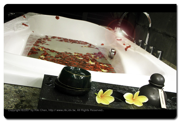好害羞, 今天要把洗澡水展現給大家看,不是啦~ 是介紹一下這趟旅程中最奢侈的消遣「SPA」。 SPA的重點是讓人的五感視覺、聽覺、嗅覺、味覺、觸覺能徹底吸收自然能量,達到健康美麗的目的,所以環境、氛圍、按摩手技和音樂等都是評估的重點。而這家位於金巴蘭的Karyu Manis Jimbaran可是當地屬一屬二的高檔店,從一入門的造景就開始作視覺享受了,心情不知不覺也愉悅起來,唯一會讓心情低落的部分大概就是價格偏高,刷卡付錢可能會瞬間抵銷所有療程效果。(筆者只要看到帳單接近3000元就會心臟病發!) 將近兩小時的療程實在非常舒服,芳療師的手藝相當高竿,毫無絲毫不舒服的地方,選擇咖啡作為去角質的配方,摩擦肌膚的過程中還可以聞到咖啡香,讓全身肌膚彷彿品嚐了一杯芳香星巴克。﹝據說同團的E性朋友選擇Ginger配方,全成辣到哀號,或者選用優格配方,從頭涼到腳... 皮皮輟~ 哈哈!!﹞搓揉乾淨後到戶外沐浴,有別於祕密空間浴室的壓迫感,露天洗澡會有種君子坦蕩蕩的feel,然後跳到玫瑰花瓣中泡澡,來巴厘島怎可以不作SPA~ 開心到最高點啦! />感謝當地旅行社Peter先生的細心安排,特別挑了一個高檔的SPA地點,讓我的身心靈可以放鬆,過度舒麻的結果導致拍出來的照片軟弱無力,還請各位見諒。 特別推薦一下 台灣人Peter經營的旅行社,除了溝通沒問題之外,幫忙安排的行程真的值回票價,(聽他建議還玩了海底漫步~ 羨煞整團的人),有興趣一遊巴厘島可以聯絡他喔^^ Peter, NeverneverLand in Bali |