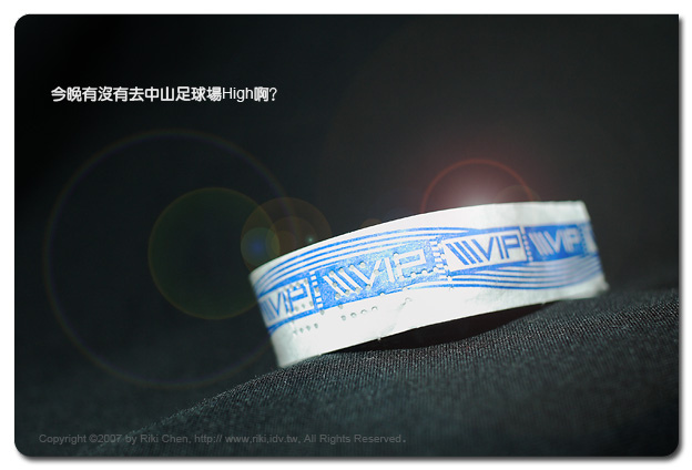 又是演唱會文章,不過本篇只有一張照片~ 因為筆者是去欣賞美國搖滾天團「聯合公園 (Linkin Park)」演出,不是辛苦拍照作苦功,基於現場禁止攝影的規定,所以一張照片都不會有,哈哈。不過對於台下拿著相機、手機狂拍的朋友們,這種看起來小小的違法行為,卻讓我有一種「小時偷摘果,長大偷牽牛」的感受,連這種小小的智財權基本尊重都做不到,那違法下載MP3、燒CD又算什麼? 想想星期五晚上可以做很多事... 不過有什麼比跟著四萬人擠在中山足球場看搖滾演唱會過癮呢?今晚的舞台陽春、歌手服裝很隨性,可是當音樂性足夠、感染力懾人,這些又算得了什麼?從第一首歌《NOMORESORROW》開始,就沉浸在聯合公園的音樂世界中... 今天晚上... 我很榮幸帶著VIP區的手環,在中山足球場聽Linkin Park!! |