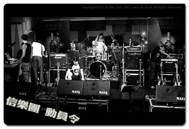 一場樂團演出活動需要一群人各司其職 除了Tomi, 曉華, Chris, Michael 這四人之外 還有好多好多無名英雄 一同投入熱情能量喚醒搖滾燃燒 2007.11.10 - 台北 The Wall pm 8:00 搖滾大神的子民們 讓我們齊聚ㄧ堂歌頌音樂 舞台上 舞台下 找到自己的位子 忘情地一起盡情演出 這是 信樂團 發出的動員令 準備好了嗎? 當天我的代號是舞台攝影師 那你呢? |