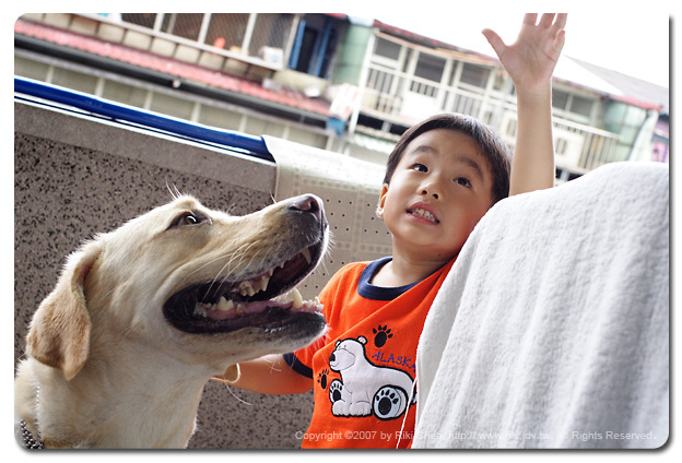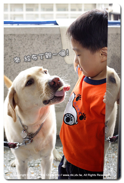 幼稚園的除了吃餅乾喝牛奶睡午覺,還有訓練小朋友上台發言,其中重頭戲就是「Show & Tell」,把平常生活有趣的東西,整理一下跟全班小朋友一同分享,內容包羅萬象從爸爸打媽媽到NDSL馬利歐都可以說,如果愛現一點的家長就會選比較有看頭的主題,譬如說「爸爸的保時捷休旅車」,「媽媽天天戴不同鑽戒」這種譁眾取寵的內容。(我好像在教壞小朋友??) 遠在韓國的金太郎決定挑選「布丁」作為報告主題,大概是覺得跟其他小朋友「撞題」機會不大,而且有隻大狗實在很酷,當天一定很受歡迎,所以就這樣上台囉... Hello everybody, today I will tell a story about My Dog, Pudding. Pudding is a very big dog, and the color is yellow~ just like pudding. So I call him Pudding. I always give him a lot of snacks, that's why pudding grow up so big. We take walk in the park, Pudding will follow my order and keep walking next to me. After weekly exercise, I will help Pudding to take shower and have a sweet nap together. Pudding is not only my dog, he is my brother. I will love him forever! The End! |