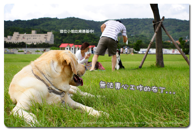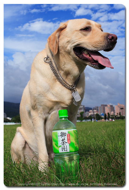 哎啊~ 永飽安康網站好久不見巨星布丁的蹤影,絕對不是因為失寵了... 實在是檔期喬不出來,無法跟喜愛布丁的觀眾們見面。(鬼扯... 明明是主人偷懶加上天氣差,很少出外景啦) 這個週末天氣不錯,天空藍到讓偏光鏡無用武之地,那就帶著布丁到河濱公園出個外景,拍幾張照片放網路上,看能不能引起飲料商的興趣,找布丁拍拍廣告,賺點飼料費也犒賞主人荷包一下...^^。 拍攝的過程非常不順利,布丁大爺無法專心面對鏡頭,一直回頭痴痴凝望後方,嚴重影響到相片拍攝進度,後來工作人員前往了解原因,原來是家庭野餐吃肯德基炸雞中... 這真是太誘惑了,布丁還一度放下工作,衝到拿著炸雞的小姐面前,露出標準拉拉笑容,祈求一口~ 只要一口,狠心的小姐連小屑屑都不肯分給巨星~ 沒關係,拍完照片回家爸爸給你牛肉乾吃。 今天拍攝主題是御茶園廣告,咦,狗怎能喝茶~? 看倌您就不了囉,這廣告是說... 這飲料很好喝,喝完的空瓶還可以裝水給狗喝,一瓶兩用資源不浪費,哈哈哈。 |