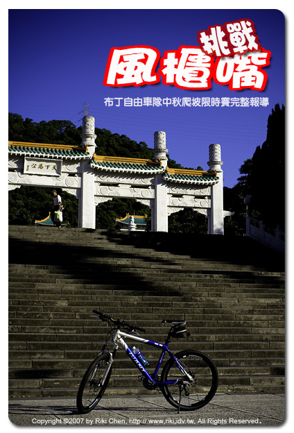 布丁大車隊的技師屎棟另外組了一個石頭車隊,很積極舉辦晨騎的活動,中秋前夜透過MSN邀請共襄盛舉「風櫃嘴」計畫,但重要節慶家裡要祭拜祖先本來要推辭,可是屎棟很熱切的邀約要不忍拒絕,協調後決定以「限時挑戰賽」方式參加這次活動。 有玩過賽車遊戲應該都知道這種高檔的玩法,一定的時間內要到達目的地,時間用盡就Game over,當天我以九點整為目標,七點整在故宮門前等待石頭車隊一同出發,用兩小時挑戰傳說中的風櫃嘴。 何謂風櫃嘴?風櫃嘴路段從故宮起算到山頂風櫃嘴,全程約12公里,一開始約2公里屬於熱身緩上坡,明德樂園前的200公尺上坡就開始刺激了。車友習慣在入山口橋上稍作休息再出發,隨後就是真正的硬戰,一連串的30度斜坡真的很要命,那種坡坡相連到天邊的感覺真的很討厭... 會有種想讓自行車裝馬達改成機車的衝動。 當天石頭車隊大遲到,延誤了限時賽的時間,埋下了挑戰失敗的種子...,接下來的陡坡讓越級挑戰的我吃了大苦頭,很吃力地爬過了帕米爾公園,體力大概就耗盡了... 坐下來休息順便跟車友聊天,所以~ 一到九點我就解脫澇跑下山囉!! 坡度有多陡? 衝下山的時速可以突破50公里,如果膽子大一點還可能被測速照相拍到超速,哈哈哈 練習一陣子後再去挑戰吧! peace~ |