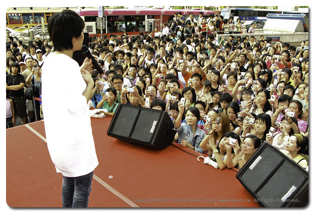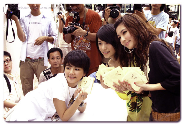 星期天是個大日子,站前KMALL廣場一大早都擠滿人,為了參加Ella替愛犬薔薔發行的紀念EP而來,會場中除了興奮的歌迷之外,還來了一群可愛的志工,他們是來自流浪動物之家的朋友們,讓這場簽唱會有著不同以往的喜樂氣氛,許多歌迷也自告奮勇幫忙散發傳單,與Ella一同為可憐的小動物盡一份心力。不只熱情歌迷們出錢出力,這場簽唱會相關的廠商舉凡舞台、音響、輸出、節目主持人...,皆分文未取地友情贊助,共同響應Ella的義舉。 成功的藝人擁有比平凡人更多的社會資源,所以更要懂得回饋社會。在今天這場簽唱會上,我們看到Ella用她的力量,凝聚這樣多的工作人員,集合媒體力量、號招歌迷朋友一起完成這一件有意義的事,必須給這位可愛的藝人很高的評價,真的很有心、無私的奉獻。 當Ella在台上唱著「薔薔」這首歌時,擴音器中突然傳出熟悉的合音,原來是好姐妹Selina、Hebe給了Ella一個驚喜,意外地出現在簽唱會場,來給Ella打氣加油,集合S.H.E三個人的力量,告訴大家飼養寵物的正確觀念,絕對要量力而為、三思而後行,養寵物就是一輩子的承諾,任意遺棄是最要不得的一件事。 簽名活動正式開始了,每次簽唱會總會有討厭的人插隊,不過今天很特別歌迷們自動讓兩位美麗的女士先簽名,原來是Selina與Hebe帶著她們購買的CD上台來,每個人可是認購一百張CD喔。看著這樣的畫面很感動,其實也挺怪異的... 以往都是三個人一字排開簽名,這次卻是Ella幫兩位好姐妹簽名,呵呵呵... 簽唱會順利地結束,臨走前Ella不忘再次感謝現場所有歌迷,也再三叮嚀愛護寵物的觀念。很特殊與歌迷的互動方式,不是那種耍帥、比酷、裝可愛的膚淺模式,這種有點「說教」的互動,在演藝圈似乎不多見,據我所知S.H.E的歌迷送給偶像的大禮,也幾乎是捐血紀錄、捐款單等公益活動的單據,有這樣的偶像團體,真的是台灣演藝圈的福氣喔! |