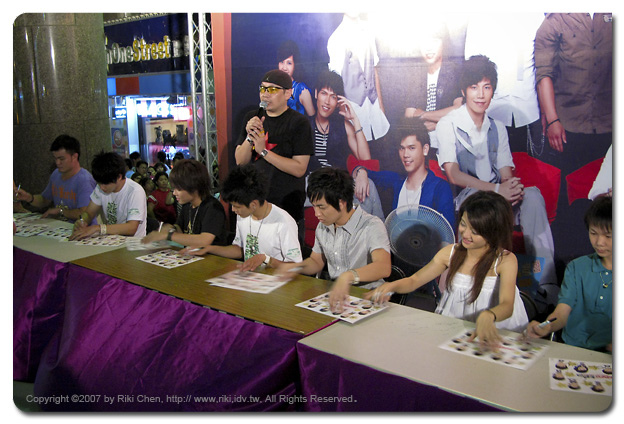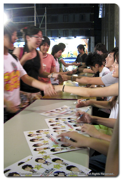 這個週末累斃了... 星期五扛大砲拍攝《五月天》小巨蛋演唱會,週六到台中水利廣場串門子《星光幫》簽唱會,雖然團體不同、拍攝的器材也不同,相同的地方是回到家都過凌晨12點...,連續操兩天的狀況下,我真的需要蜆精 + 蠻牛,不然維士比也可以啦...。 我想大概很多朋友沒有參加過簽唱會,心裡大概會有疑問... 不過是簽個名、握握手有什麼了不起?一下子就結束了吧?... 這是在有限定名額的作法下,不過華研唱片的作法卻不是這樣,打出的口號常常都是《簽到完為止》,所以常常有簽到今夜星光燦爛的情況發生,台北微風廣場就拼到隔日凌晨,盡力滿足每一個歌迷的需求。台中這場五點開始,服務台中朋友一直到晚上九點多才驅車回台北。 支援活動沒有辦法出動單眼相機,小小一台Powershot G7插口袋就可以上場,跟台下歌迷用的差不多啦,不過我整場沒有開閃光燈喔~ 特別是夜間對著舞台上開閃燈很不禮貌,也會傷害歌手的眼睛,再此奉勸大家出門前把自己相機的設定搞清楚,翻翻Menu上「強制關閉閃燈」如何設定?以及因應入夜後光源不足,必須提高感光度(ISO值)到 400 或 800,如果機器上有防手震的功能那就更理想囉 ^^。再次叮嚀大家,簽唱會拍照要學習不使用閃光燈的禮貌與尊重喔。 |