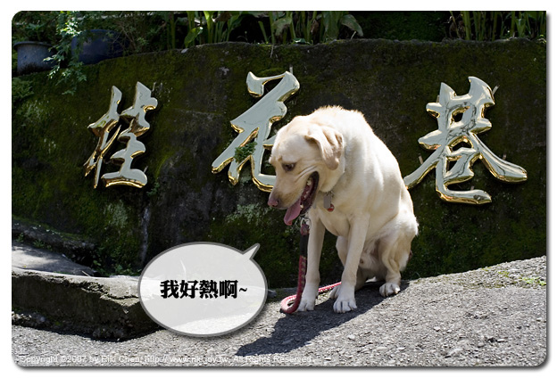 想想也好久沒有出門,買了GPS總不能老是導航自己認識的路,星期五就下定決心遠離塵囂,帶著布丁來一趟兩天一夜文化之旅。 先跟各位報告一下本次的旅行規劃: DAY 1:台北 > 飛牛牧場(用餐) > 華陶窯 > 夜宿南庄民宿 DAY 2:南庄市區之旅 > 向天湖 > 北埔(用餐) > 台北 由於本人不會看地圖,也搞不清楚省道、台幾線,旅行規劃採用最偷懶的方法,搞清楚想去的地方,大概知道地理位置,旅程求順路就好,其他就交給GPS、不然路邊問檳榔西施也可以啦...。幫我的GPS廠商打打廣告,買了外型很漂亮的Novogo S300,導航功能還算OK,起碼我活著回來囉~ 另外攝影器材方面,這次只帶了 Canon 350D + 35mm F2 這顆鏡頭,以及Canon Powershot G7,輕便的攝影工具就上路一切從簡,大部分都是使用350D拍攝,如果需要用到長鏡頭,那就交給G7表現,反正拍不到也不會少塊肉,人生不要太計較。 整個旅程就是一個『熱』可以形容,這真的不是開玩笑的,我們的生存環境似乎已經惡劣到一個恐怖的地步了,想想未來我們的子孫、甚至自己,都得在這種每年溫度都攀升的烤爐中生活,每個人就有責任節約能源,減緩環境暖化的速度。不要再隨著政治人物起舞了,與其開著冷氣在作秀杯葛法案搶鏡頭,不如把冷氣關了看看是不是真的愛台灣?有多少人在烈日下揮汗討生活,這些傢伙憑什麼拿我們的錢吹冷氣,拿台灣前途開玩笑? 天氣很熱,對穿著毛大衣的布丁來說負擔很大,如果網友們也想帶狗狗一同旅遊,要特別注意水分的補充喔 ^^ 附註:南庄市區只走了桂花巷,然後到7-11買飲料就結束,前後不到20分鐘吧... 太熱囉 |