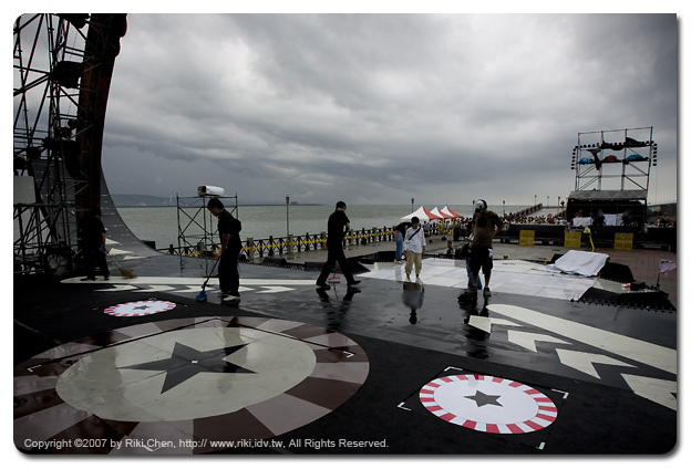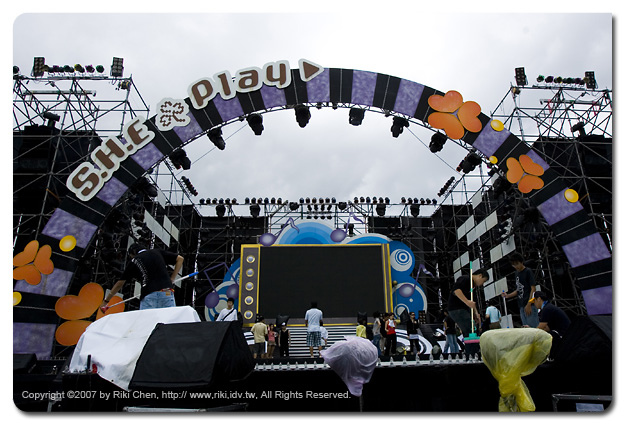 如果依照下午兩點多的狀況來說,S.H.E漁人碼頭慶功演唱會應該是辦不成的,那種傾盆大雨加雷電狂風,直接回家睡覺然後隔天跟老闆報告活動延期,怎樣想都是天衣無縫。不過筆者是有良心的,淋得全身濕也要去挺S.H.E,現場出現一下是一定要的啦。 離開捷運站眉頭不覺得就皺了起來,雨勢不是普通的大,撐著雨傘跑去買麥當勞(有耐心看下去... 這很重要),把不健康的薯條換成沙拉,召了計乘車就前往漁人碼頭。十多分的車程除了把漢堡喀掉,還跟司機先生聊天,這位運將老大是淡水人,拍胸脯保證這場雨一定不會停,這場活動絕對會停辦! (XD! 講講好話可以嗎??) 下車三秒鐘後下半身就全濕了...,帳篷裡垂頭喪氣的工作人員,只能苦笑祈禱天公保佑一下,打屁一輪後就坐下來吃我的沙拉,沁涼的蔬菜搭配岸邊徐徐海風,還有酸酸甜甜的千島醬,真是說不出的好滋味!吃著吃著... 整盤見底的時候,霎那間雨雲散去,漁人碼頭竟然奇蹟似的放晴了!﹝傻眼了,這盤沙拉好神奇喔...﹞ 雨停了,工作人員連忙清理場地... S.H.E也上台彩排,開始準備今晚的演唱會,可是真的雨過天晴嗎? ﹝未完待續﹞ |
