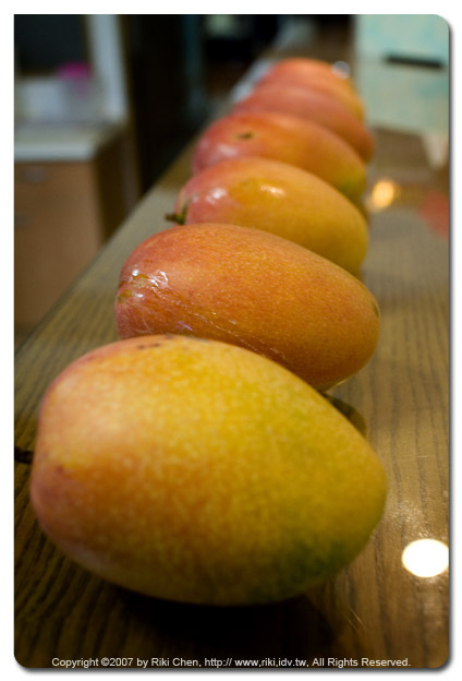 好熱啊... 好熱啊... 夏天來得慢卻威力十足,又悶又濕的天氣好想來盤芒果冰,可是永康街一盤要價150元,比我一餐飯還要昂貴,經濟不景氣時代實在不適合這樣「討債(台語)」,然後又要繳稅金給一堆貪官昏官亂搞,越想越火大,對芒果冰的渴望也越來越高~ 團購王史黛西似乎聽到了鄉民的祈禱,突然從MSN那頭敲來訊息,要團購一種超水平芒果,數量有限要我把握機會。開玩笑,想芒果想了多久~ 毫不猶豫就給它訂下去了,而且過幾天馬上交貨,周末就可以享受芒果的美味囉! 收到芒果一看,是比想像中的size小一號,不過號稱芒果通的媽媽立刻糾正我,小號的愛文芒果比較甜,不信... 切來吃吃看就知道!打開冰箱一看,老媽已經削好一盤了,拿來試吃一下,雖然還沒有完全熟透,可是那驚人的甜度已經造成口腔震撼! 這時候老媽又說話了... 還沒有熟透要再放一陣子,你過幾天回家再吃... 靠腰,又來這套~ 已經被騙過好幾次啦,還沒熟不能吃,下次就變成太熟了所以我先吃掉了,沒這回事吃飽飯再削幾顆來吃啦! 芒果產地資訊: