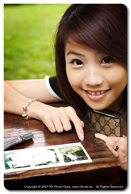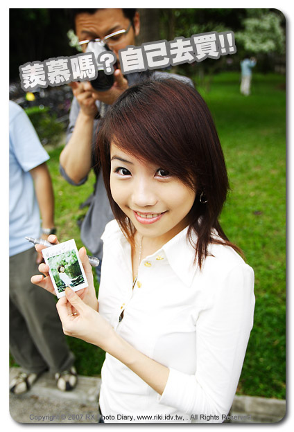 今天的主題是「把妹機」,這只是朋友對這台機器的暱稱,不是要教大家把妹技巧... 話說第一次聽到「把妹機」這名詞,是來自外拍達人《傑克‧小熊維尼》,這位老兄在拍攝現場手拿Fujifilm的小DC,利用紅外線傳輸印出一張張迷你小照片,逗得女model芳心大悅,從此這招數就在江湖上傳開了,自此打開「把妹機」的名號。 其實「把妹機」是一系列產品的統稱,第一代就是跟拍立得類似的Instant Mini,即可拍的好處是馬上看到結果,而無法複製卻是跟拍立得一樣的原罪,況且... 機器上的鏡頭品質跟砸大錢買的單眼不能比。後來因應數位相機的廣大用戶,出了新一代即可印Pivi Mobile Printer,利用紅外線與數位相機連結,拍完照片馬上就可以印出來,而且可以印好幾張,解決了拍立得相機長久以來的悲慘宿命,聰明一點的攝影人發現除了分享,其實也可以來與妹妹們結緣... 所以「把妹機」這名號就開始流傳...。 聽起來很棒對吧?上述的傑克先生就是用這招,然後搭配可愛的小熊維尼圖案的Pivi相紙,印照片給美麗的model們,每次外拍都可以特別得到美女們的青睞,所以才有《傑克‧小熊維尼》的稱號,真是不要臉...。那我為何不花錢買呢?個人覺得這個組合還是有點問題,畢竟我沒有紅外線功能的相機搭配,就算去買一台Fujufilm的相機來玩,我也覺得跟DSLR比起來還是遜一截,結果就是「雖然心動可是沒有搭配行動」。 直到上面我嫌棄的地方都解決了,心中的防線也崩塌了就花錢入手這台終極把妹機─「Fujifilm Pivi MP-300」,只要相機有Picture Bridge功能,接一條USB傳輸線,漂亮照片立刻送到! 雖然說外拍活動都有嚴格規定不可以跟Model要聯絡方式,不過沒規定不可以把自己的MSN給人家吧,所以現在流行的方式是...... 印兩張出來,一張請model簽名作紀念(對方如果上道留下手機號碼更好),另外一張就寫上自己的聯絡方式給佳人,這才不枉費「把妹機」的稱號啊。如果拍得不好,那還是別把照片印出來丟人現眼,畢竟一張Pivi相紙也不便宜,25元可以買份大亨堡耶... 當天拍攝《女王.Yvonne》拿出Pivi做示範,馬上得到社員們的熱烈迴響,這些可愛的電腦工程師們,對待女生可都是超體貼的,無時無刻與薪水的一分一毫,都願意貢獻到美女身上的,呵呵呵... 下次外拍一定人手一台「終極把妹機」!