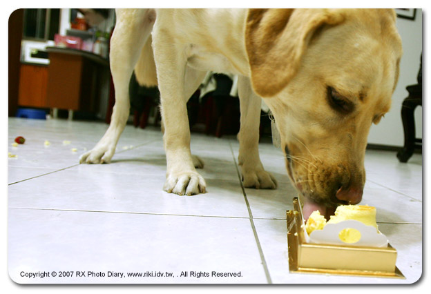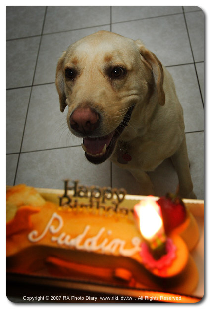 一眨眼布丁就四歲囉!想當初抱回來還只是舒潔拉拉的大小,現在已經變成40KG的龐然大物,雖然甚麼都不會... 咬拖鞋習慣也改不了,愛吃又傻愣愣的布丁已在我腳邊磨蹭了四年,生活就如同狗臉上微笑般充滿歡樂。 四歲生日當然要好好慶祝一番,買了個狗蛋糕給丁丁慶生,號稱是輕乳酪口味,打開來還真的挺香的﹝這個人應該也可以吃吧?﹞,拍照之前人與狗都得忍住誘惑,吹完蠟燭才能吃... 看到布丁眼中的渴望,我知道牠想說的是...... 都是我的、都是我的、都是我的....。好吧... 今天壽星最大,輕輕地把蛋糕放在地上,一陣風過後就只剩下紙盒了,還有一隻吃太飽躺在地上喘的胖狗。 布丁生日快樂喔! p.s. LL媽還有Uncle Joe的禮物不要忘記了,禮多人不怪、現金也收喔~ |