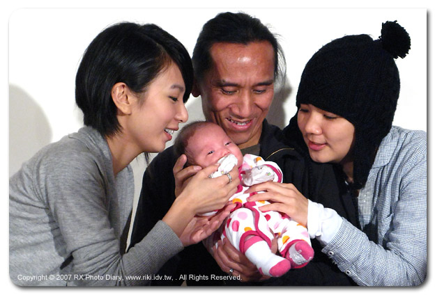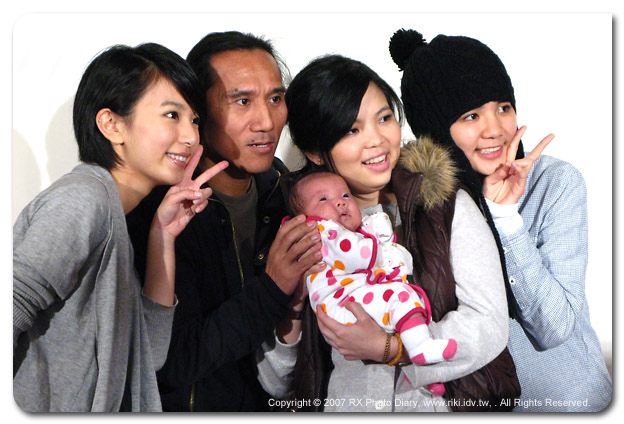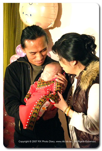 因為工作的關係受邀參加《動力火車》顏志琳千金的雙滿月酒會,難得有機會赴宴沾點喜氣、又不用拿相機拍照,當然要前往共襄盛舉一下。由於是演藝圈的喜事,現場免不了一大堆媒體,但是大家都很有默契把閃光燈收起來,小寶貝的眼睛可是要好好愛護,所以今天的照片光線看起來都比較怪,全場拍照只能靠主辦單位貼心準備的照明燈,為了小寶貝的健康,攝影大哥們就多包涵囉。 之前聽搖滾力道十足的《動力火車》音樂,很難想像他們當爸爸的樣子,在舞台上呼風喚雨主宰一切的原住民歌神,竟然有這麼惜福滿足的一面。抱著身著傳統原住民衣服的Mimi,這個得來不易的小公主,讓顏志琳臉上充滿的弧線,謙卑地感謝上天賜與照顧新生命的機會。 藝人的小孩果然是不一樣,面對數十隻麥克風的Mimi,聽著大人們的訪問與快門聲依舊沉睡,完全不為所動,台風穩健果然有乃父大將之風,直到同屬華研唱片的S.H.E上台接受連訪才打個哈欠醒過來。好一個小Mimi,第一次的面對媒體竟然可以請到《動力火車》與《S.H.E.》兩大團體站台,未來前途一定不可限量,預計大概15年後就可以準備出唱片囉 ^__^ 咦?不用拍照哪來的照片啊?唉啊,小朋友太可愛了,忍不住就拿G7拍個幾張囉~~ |
